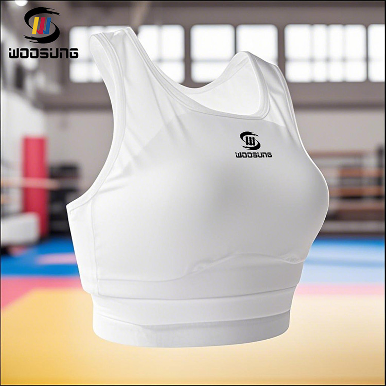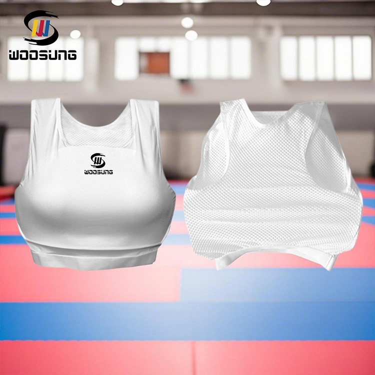 تلتزم WOOSUNG بتزويد فنانات القتال في جميع أنحاء العالم بمعدات واقية تجمع بين الأداء الاحترافي والراحة القصوى. يتميز واقي الصدر للسيدات من الكاراتيه بتصميم مريح وحاصل على براءة اختراع، ويحمي منطقة الصدر والقفص الصدري من خلال تقنية امتصاص الصدمات عالية الكثافة.