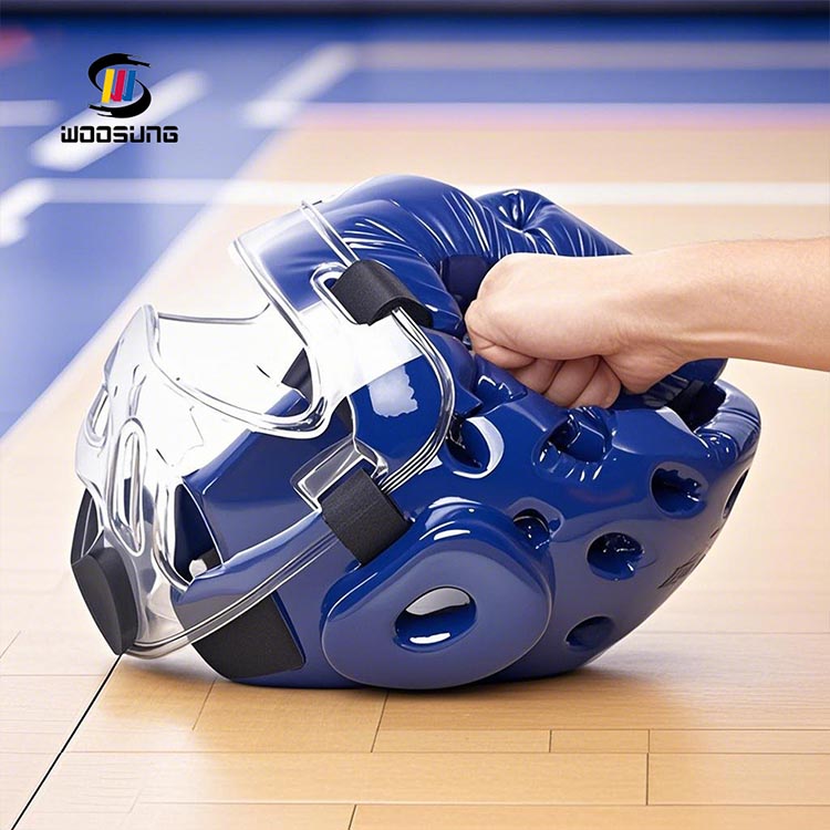 تخضع حواف واقي رأس التايكوندو مع القناع لعملية تلميع دقيقة. الغرض الرئيسي من هذه الخطوة هو إزالة الأجزاء الحادة أو الخشنة التي قد تسبب احتكاكًا أو ضغطًا على جلد الرياضي أثناء التدريب أو المنافسة. بعد التلميع، تصبح الحواف ناعمة وحساسة، مما يحمي جلد الرياضي بشكل فعال مع تحسين راحة الارتداء بشكل كبير.