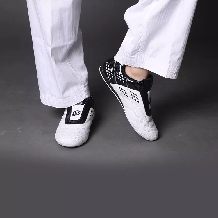 تتميز أحذية التايكوندو البيضاء ببنية بطانة مسامية لتعزيز دوران الهواء وتقليل الانسداد. بالإضافة إلى نظام أربطة قابل للتعديل، يمكن لمرتدي الحذاء تعديل إحكامه وفقًا لشكل قدمهم للحصول على ملاءمة أكثر راحة وأمانًا.