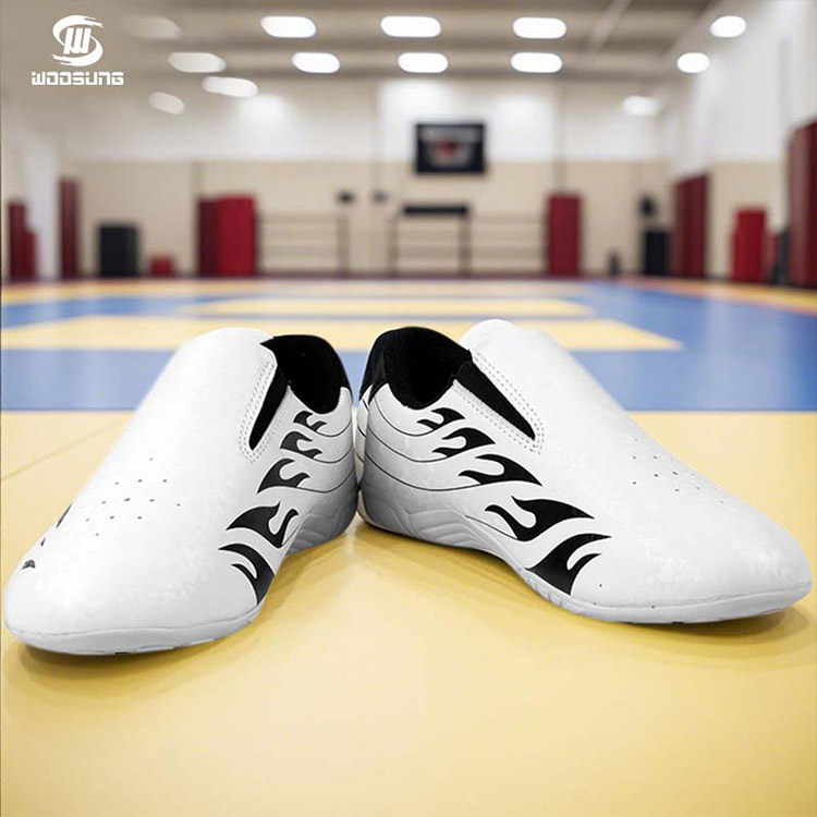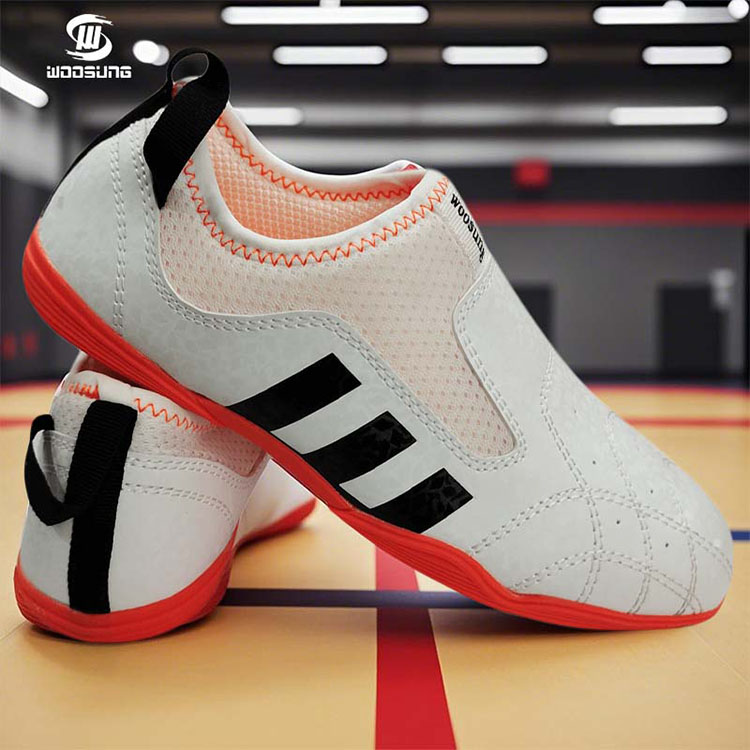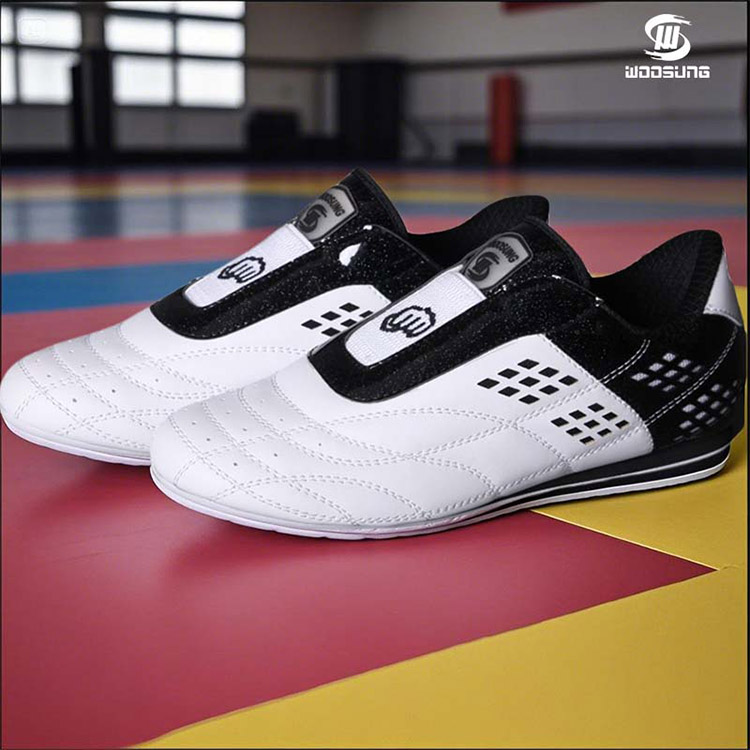 بالنسبة لأحذية التايكوندو البيضاء، تستخدم WOOSUNG مواد صناعية أو جلد عالي الجودة: