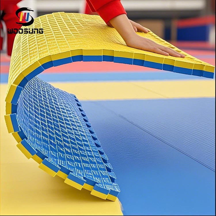 ووسونغ®تُصنع حصائر التايكوندو من رغاوي مختارة عالية الكثافة لضمان متانتها وتبطينها ومرونتها الممتازة. لا يضمن تصميم هيكل الخلية المغلقة الفريد ثبات الأداء في ظل الاستخدام طويل الأمد فحسب، بل يتميز أيضًا بوظائف مقاومة للماء ومضادة للبكتيريا، مما يجعلها مناسبة بشكل خاص للاستخدام في أماكن التدريب العامة. تتميز السجادة بسطح أملس وقبضة قوية، مما يوفر دعمًا ثابتًا للحركات عالية الكثافة مثل الركل والقفز، مما يقلل بشكل كبير من خطر الانزلاق.