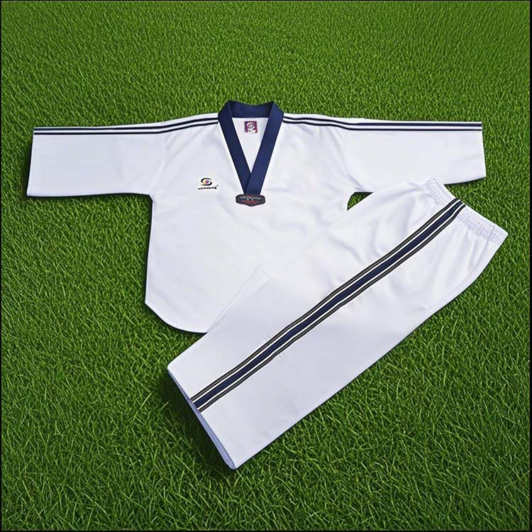 يستخدم زي التايكوندو هذا ذو الخطوط نسيجًا قطنيًا عالي الجودة لتوفير تهوية وراحة ممتازة، ويتميز بتفاصيل شريطية مميزة على السترة لتحسين الرؤية. تم تصميمه بخياطة معززة وملاءمة منظمة لضمان حرية الحركة أثناء التمرين، بينما تم تجهيز البنطال بحزام خصر برباط آمن وألواح ركبة معززة لمزيد من العملية والمتانة. يتوفر الزي أيضًا بمقاسات متنوعة مناسبة للصغار والكبار.