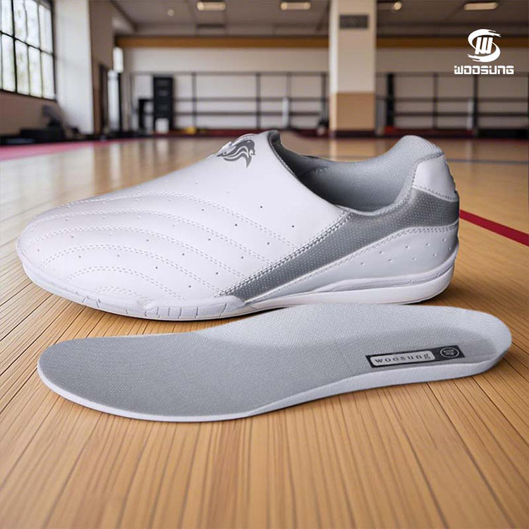 يرمز اللون الأبيض، باعتباره اللون الكلاسيكي لأحذية التايكوندو، إلى نقاء قلب الفنان القتالي والسعي إلى تحقيق أعلى مستوى من المهارات. في الجزء العلوي، تشبه الخطوط الزخرفية الفضية أو الذهبية الروح المتدفقة للفنون القتالية، والتي لا تضيف فقط إلى الجو الحديث والعصري لأحذية التايكوندو البيضاء، ولكنها أيضًا تومض الضوء الفريد للفنون القتالية في كل ركلة. شعار العلامة التجارية على اللسان ليس ضمانًا للجودة فحسب، بل أيضًا وراثة وتطوير روح فنون الدفاع عن النفس. إنه يذكر كل مرتديه بالحفاظ على حبه واحترامه للفنون القتالية بغض النظر عن مكان وجوده.